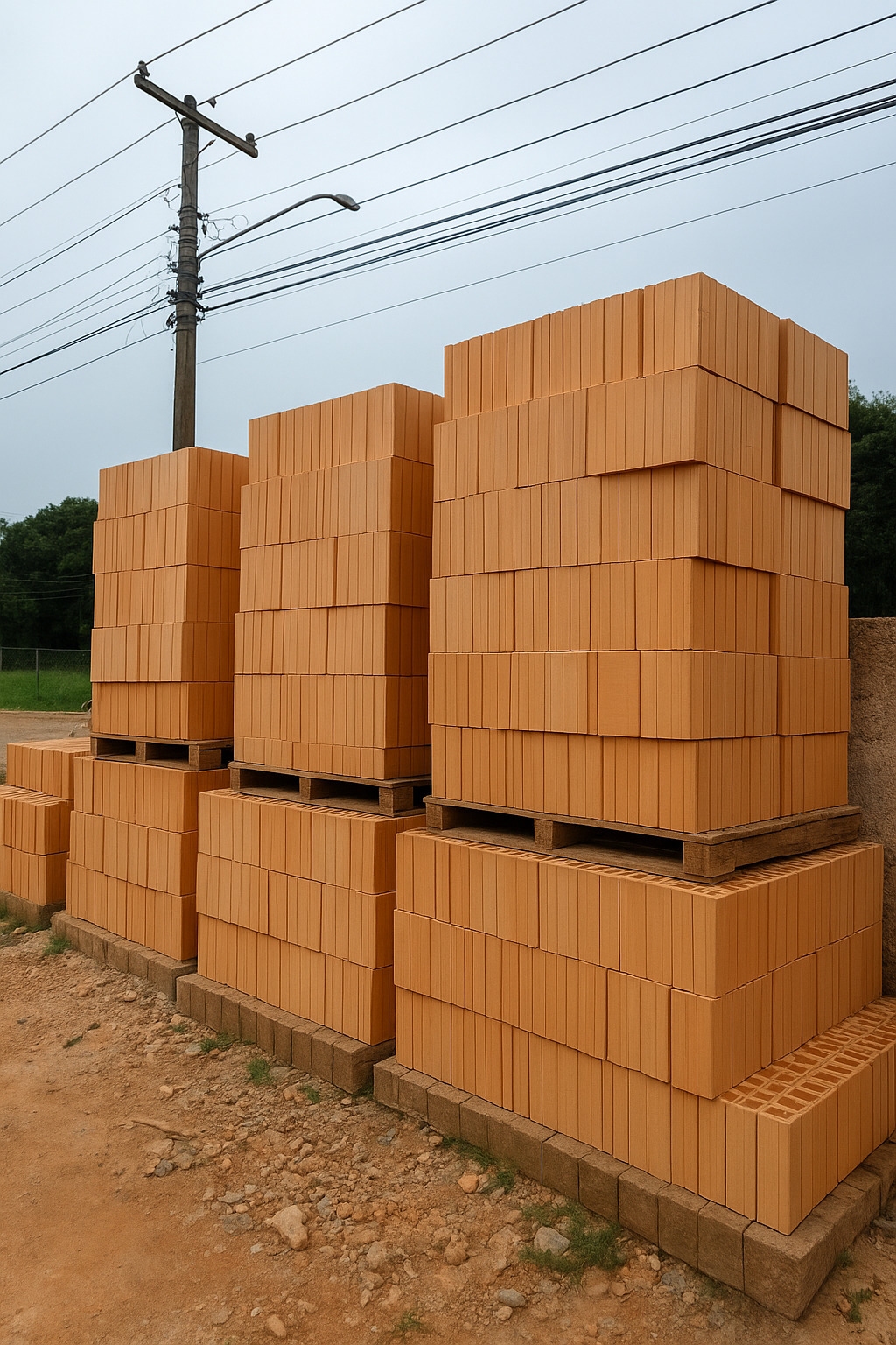 Tijolos, blocos, cimento, areia e argamassa.